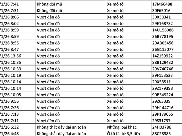 Dưới đây là danh sách 136 phương tiện vi phạm được camera AI phát hiện.