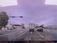 Ngay khi vừa vào cua được nửa đường, nam thanh niên đã vô cùng hốt hoảng khi thấy chiếc xe tải lớn đang lao về phía mình.