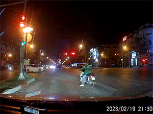 Thấy chiếc ô tô đi phía trước vượt đèn đỏ, vài giây sau, người đàn ông đi xe máy có pha xử lý tương tự nhưng lần này sự may mắn đã không còn xuất hiện một lần nữa giữa ngã tư.