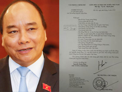 Văn phòng Chính phủ vừa có văn bản giới thiệu chữ ký của Thủ tướng Nguyễn Xuân Phúc và 3 phó thủ tướng Trương Hòa Bình, Vương Đình Huệ, Trịnh Đình Dũng.