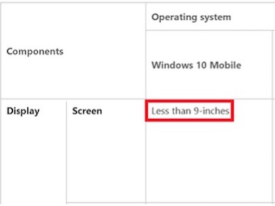 Theo thông tin chính thức từ Microsoft thì Windows 10 Mobile sẽ hỗ trợ cho các thiết bị di động có kích thước màn hình lên đến 9 inch.
