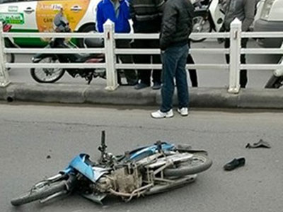 Khi đến trước số nhà 274 Âu Cơ (Tây Hồ, Hà Nội), chiếc xe chở hai thanh niên bất ngờ mất lái, đâm vào cột đèn trên hè. Cú đâm mạnh khiến hai nam thanh niên bất tỉnh, còn chiếc xe văng ra giữa đường.