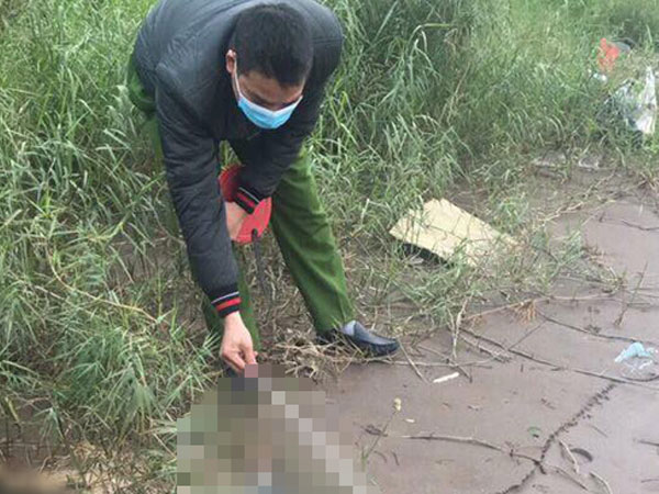 Công an tới hiện trường tổ chức tìm kiếm, thấy một bao tải màu xanh, bên trong chứa thi thể đang phân hủy mạnh, bốc mùi hôi thối.