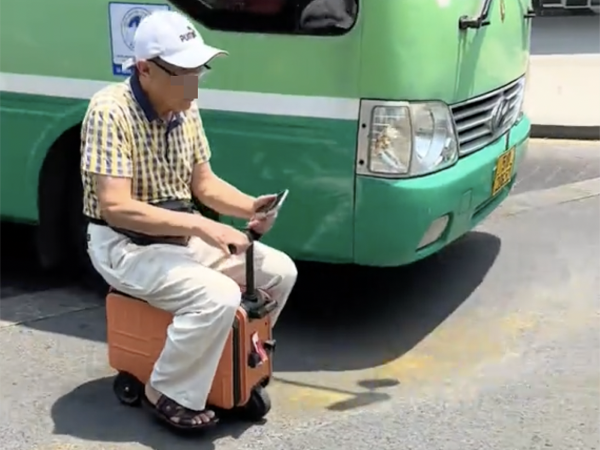 Công an xác minh clip người đàn ông 'cưỡi' vali chạy bon bon trên phố