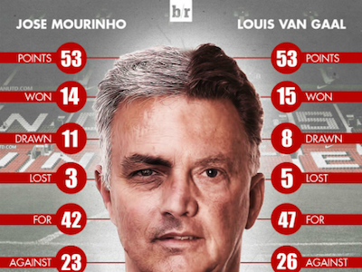 Mourinho không hơn Van Gaal qua 28 trận đầu ở Ngoại hạng Anh