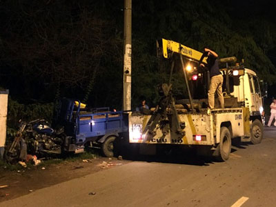 Do tránh chiếc ôtô chạy cùng chiều, xe ba gác lao sang phải tông vào tường rào trong đêm. Tài xế chết tại chỗ, một thanh niên bị thương rất nặng.