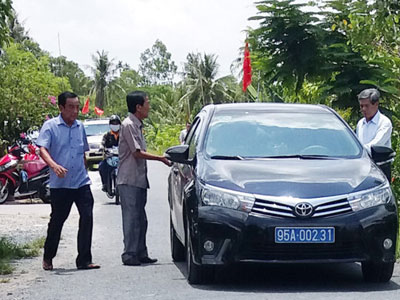 Hai trong số nhiều ôtô chở cán bộ đi dự tiệc thôi nôi cháu nội của ông Lê Minh Cường, Bí thư Huyện ủy Vị Thủy (Hậu Giang) là người đồng cấp ở Huyện ủy Châu Thành và Thành ủy Vị Thanh.