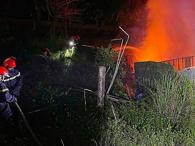 Vụ cháy xe container xảy ra rạng sáng nay tại huyện Tĩnh Gia tỉnh Thanh Hóa làm hai người mắc kẹt trong cabin, chết cháy thương tâm.