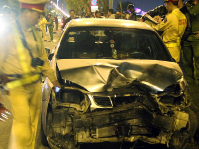 Ôtô 4 chỗ bất ngờ lao sang làn đường ngược chiều trên đường Trần Hưng Đạo (Đà Nẵng) và gây tai nạn liên hoàn khiến 4 người bị thương.