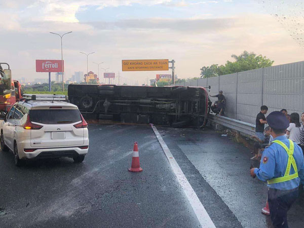 Va chạm với xe limousine, ô tô khách lật trên cao tốc Pháp Vân - Cầu Giẽ