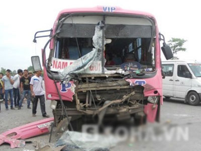 Xe khách nát đầu ở Hà Nam, hành khách choáng váng