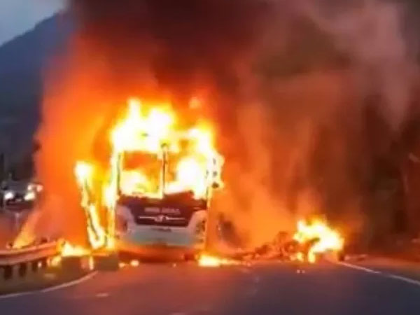 Xe khách giường nằm chở hơn 40 hành khách bốc cháy trên đèo