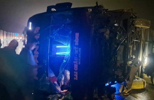 Xe khách lật ngang trên cao tốc Nội Bài - Lào Cai