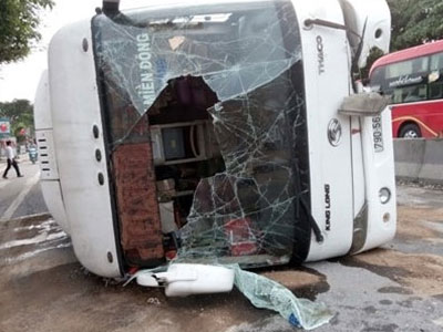 Đang chạy trên cao tốc Pháp Vân - Cầu Giẽ chiếc xe khách bất ngờ bị lật chắn ngang đường. Vụ tai nạn khiến 2 hành khách tử vong tại chỗ, 10 người bị thương được đưa đi cấp cứu tại bệnh viện.