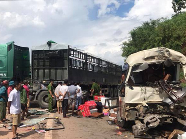 Xe khách đối đầu với xe tải trên Quốc lộ 20, địa phận huyện Di Linh, tỉnh Lâm Đồng, 50 hành khách trên xe la hét thất thanh, 2 xe hư hỏng nặng.
