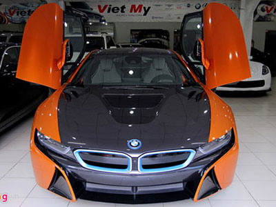 Do số lượng BMW i8 nhập về Việt Nam khá nhiều nên chủ xe muốn biến xế cưng của mình thành hàng độc. Một trong số đó được dán decal màu cam - đen nổi bật.