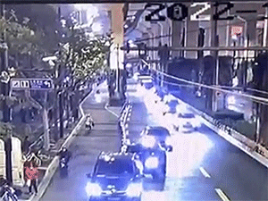 Đoạn video của chiếc xe đi sau đã ghi lại toàn bộ khảnh khắc một người bị văng ra khỏi chiếc xe tải bị trôi dốc ở Thái Lan.
