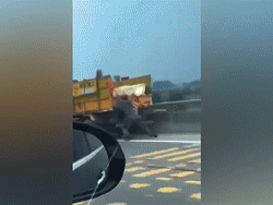 Ba người hiện chưa rõ tình trạng đã được đưa đi cấp cứu tại một bệnh viện Trung Quốc sau khi bị một lượng lớn sỏi đất vùi lấp trong một vụ tai nạn. Trước đó camera giao thông cùng với người dân đã ghi lại cảnh một chiếc xe tải mất lái lật nghiêng và va vào chiếc xe con chở 3 nạn nhân trên.