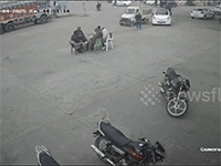 Ngay sau khi thấy tình thế của chiếc xe tải, người phụ nữ điều khiển xe máy vội vã bỏ chạy.