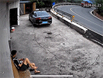 Đang ngồi "lướt" điện thoại trước cửa nhà, một nam thanh niên Trung Quốc bỗng nhận ra tình huống nguy hiểm và kịp thời bỏ chạy khi thấy chiếc xe tải chở ngô bị mất lái khi vào cua và bị lật nghiêng xuống đường.
