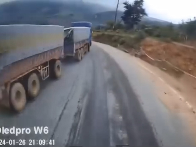 Thót tim với tình huống xe tải lấn làn và tình huống xử lý tài tình của xe đối diện