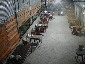 Người đàn ông vô tình điều khiển xe máy lao thẳng vào quán cà phê