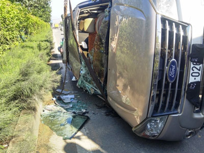 TPHCM: 3 người hoảng loạn bò ra từ chiếc ô tô lật
