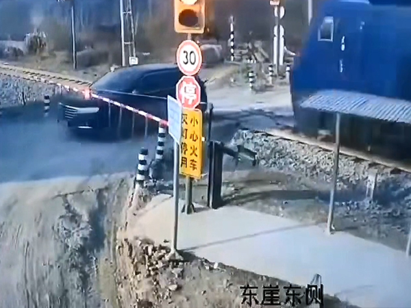 Clip: SUV suýt bị xe ben 'báo hại' khi đứng cạnh đường tàu