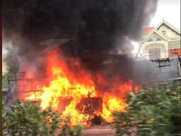 Ôtô bốc cháy không rõ nguyên nhân, một thi thể cháy đen