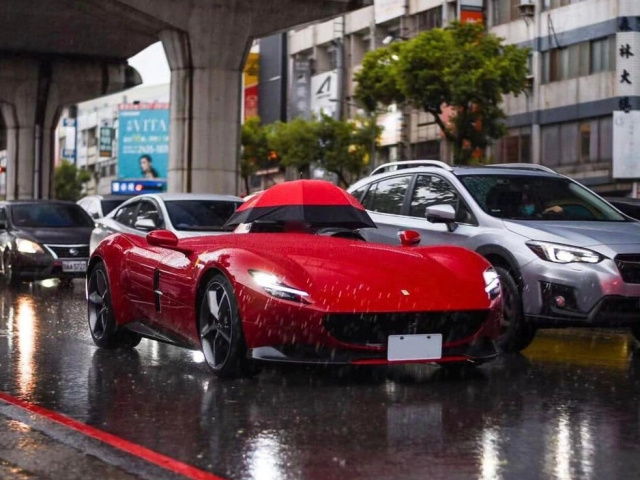 Một người cầm lái Ferrari Monza SP1 đã gặp tình huống dở khóc dở cười khi mưa xuống.