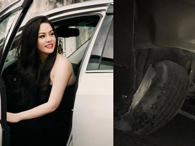 Xế hộp của nữ ca sĩ hư hỏng nghiêm trọng, lốp bị nổ, gãy lìa khỏi trục, còn cô an toàn.