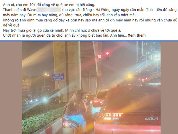 Ngày nào cũng xin 10 nghìn đổ xăng ở ngã tư Hà Nội, người đàn ông bị vạch trần thân phận