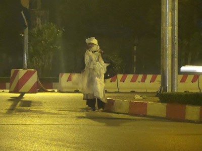 Người phụ nữ quấn đồ trắng xuất hiện giữa đêm khuya tại Hà Nội