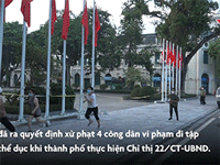 Công an quận Hoàn Kiếm (Hà Nội) phối hợp UBND phường Tràng Tiền xử phạt 4 người phụ nữ đi tập thể dục quanh hồ Hoàn Kiếm với tổng số tiền 8 triệu đồng.