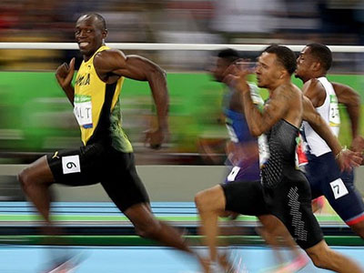 Usain Bolt lần thứ ba liên tiếp giành HCV nội dung 100 m nam tại Olympic. Anh thể hiện sự thống trị trên đường chạy này bởi còn có thời gian quay lại nhìn đối thủ ở vạch đích.