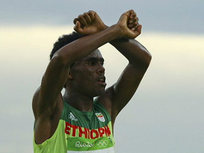 VĐV marathon Lilesa có thể gặp rắc rối vì hành động phản đối chính phủ Ethiopia khi chạy về đích ở Olympic 2016.