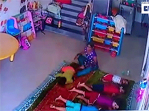 Camera giám sát trong lớp học đã ghi lại cảnh tượng bạo lực kinh hoàng này. Bé 9 tháng tuổi sau đó được đưa đến bệnh viện trong tình trạng nguy kịch.