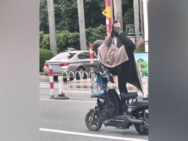 Trang 1Choáng với tư thế yoga người phụ nữ duy trì khi lái xe đạp điện