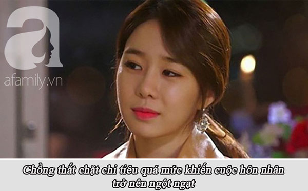 - Làm không ra tiền, nhà thì chưa có, em phải biết cân đối chi tiêu chứ. Tiền ăn 2 vợ chồng ở quê không được phép vượt quá 1 triệu rưỡi/tháng. Đấy, em như thế này anh không cho em giữ tiền là đúng mà.