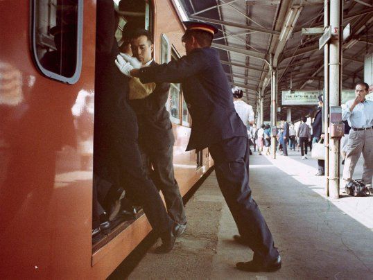 Đẩy khách lên tàu ở Nhật