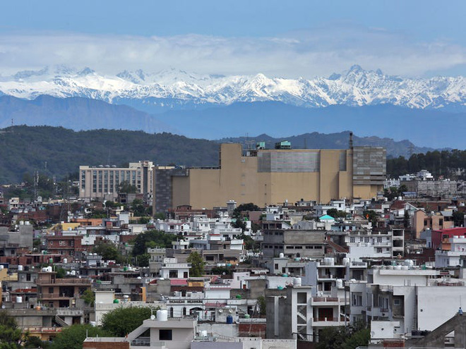 Tương tự, dãy núi Pir Panjal phủ đầy tuyết đã có thể nhìn thấy từ một khu dân cư ở Jammu, Ấn Độ vào đầu tháng Năm.