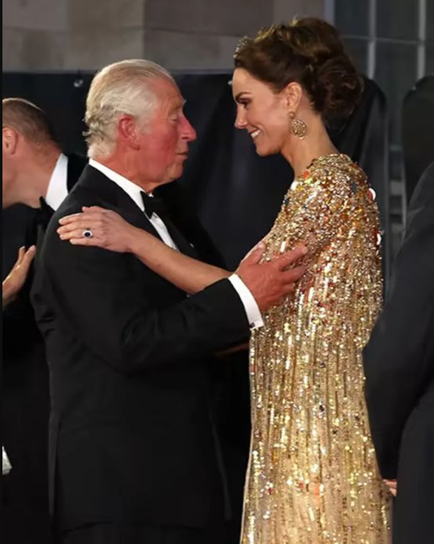 Khi vợ chồng Vương phi xứ Wales cùng với Vua Charles và bà Camilla tham dự buổi lễ công chiếu toàn cầu của bộ phim James Bond: No Time To Die tháng 9/2021, Kate đã nhận được sự chào đón nồng nhiệt từ bố chồng.