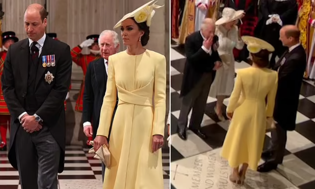Khi Vương tử William và Kate tham dự nghi thức tạ ơn trong Đại lễ Bạch kim, Vua Charles và bà Camilla đã chào đón con dâu bằng những cử chỉ thân mật.