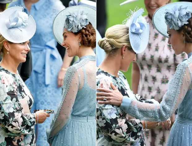 Tại Royal Ascot hồi tháng 6/2019, Kate và em dâu Zara Tindall thể hiện tình cảm khi ôm và hôn lên má nhau. Các con của Kate và Zara cũng rất thân thiết với nhau.