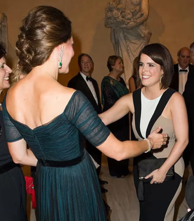 Kate trông rất vui mừng khi gặp Vương tôn nữ Eugenie trong chuyến đi tới New York vào tháng 12 năm 2014. Eugenie đang làm việc ở một công ty đấu giá ở Big Apple vào thời điểm đó.