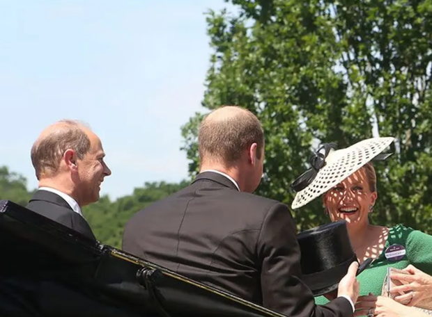 Kate và nữ bá tước xứ Wessex, Sophie có mối quan hệ rất tự nhiên, thân thiết. Đây là bức ảnh được chụp ngay sau khi Sophie bước vào xe ngựa ở Royal Ascot, và suýt ngã vào người Kate.