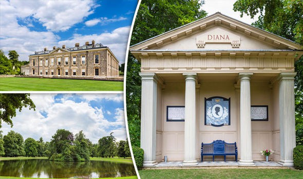 Công nương Diana được an táng tại khu dinh thự Althorp nằm trên địa bàn huyện Daventry, hạt Northamptonshire, vùng East Midlands, Anh Quốc. Nơi an nghỉ của bà nằm trên một hòn đảo nhân tạo nhỏ xinh ở giữa hồ Oval Lake. Bao quanh mộ phần của bà là những hàng cây xanh bóng yên ả. Tại đây, 36 cây sồi đã được vun trồng, đại diện cho 36 năm cuộc đời của vị Công nương tài sắc vẹn toàn.