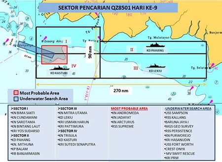 Theo Reuters, hải quân Indonesia vẫn đang nỗ lực hết sức để tìm kiếm các phần còn lại của máy bay trong điều kiện biển lặng hơn. Năm tàu thủy hiện đại, có năng lực định vị hộp đen đã có mặt tại 5 khu vực tìm kiếm. Tuy nhiên, vẫn chưa có dấu hiệu nào nhận biết về vị trí của 2 hộp đen – đầu mối quan trọng nhất để tìm ra nguyên nhân vì sao máy bay AirAsia bị rơi.