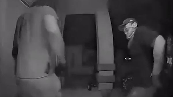 Cụ thể, 4 tên cướp đeo mặt nạ kỹ lưỡng bước ra từ một chiếc xe sedan đi đến trước cửa một ngôi nhà. Tên đầu tiên phát hiện chiếc camera gắn bên ngoài nhà đã nhanh chóng lấy tay che lại và đứng trước máy quay để che giấu việc làm phạm tội của chúng. Thế nhưng, tên này đã bỏ tay ra sau khi 3 đồng bọn của hắn nhập hội, chuẩn bị đột nhập vào bên trong kiếm chác.