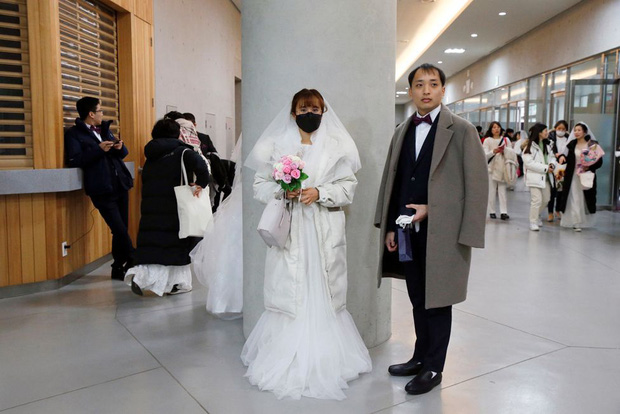 Lee Kwon-seok vô cùng hào hứng khi cùng hàng ngàn cặp đôi khác thực hiện hôn lễ tập thể vào hôm 7/2 ở Hàn Quốc - một sự kiện do Giáo hội Thống nhất tổ chức. Tuy vậy, Lee và cô dâu đã phải chuẩn bị một thứ đặc biệt khi dịch viêm phổi bùng phát - đó là những chiếc khẩu trang. Lee đeo khẩu trang màu đen và vợ đeo một chiếc màu trắng cho đồng điệu với trang phục. "Kể từ khi có dịch virus corona, tôi thường đeo khẩu trang để bảo vệ mình" - chú rể 35 tuổi chia sẻ.
